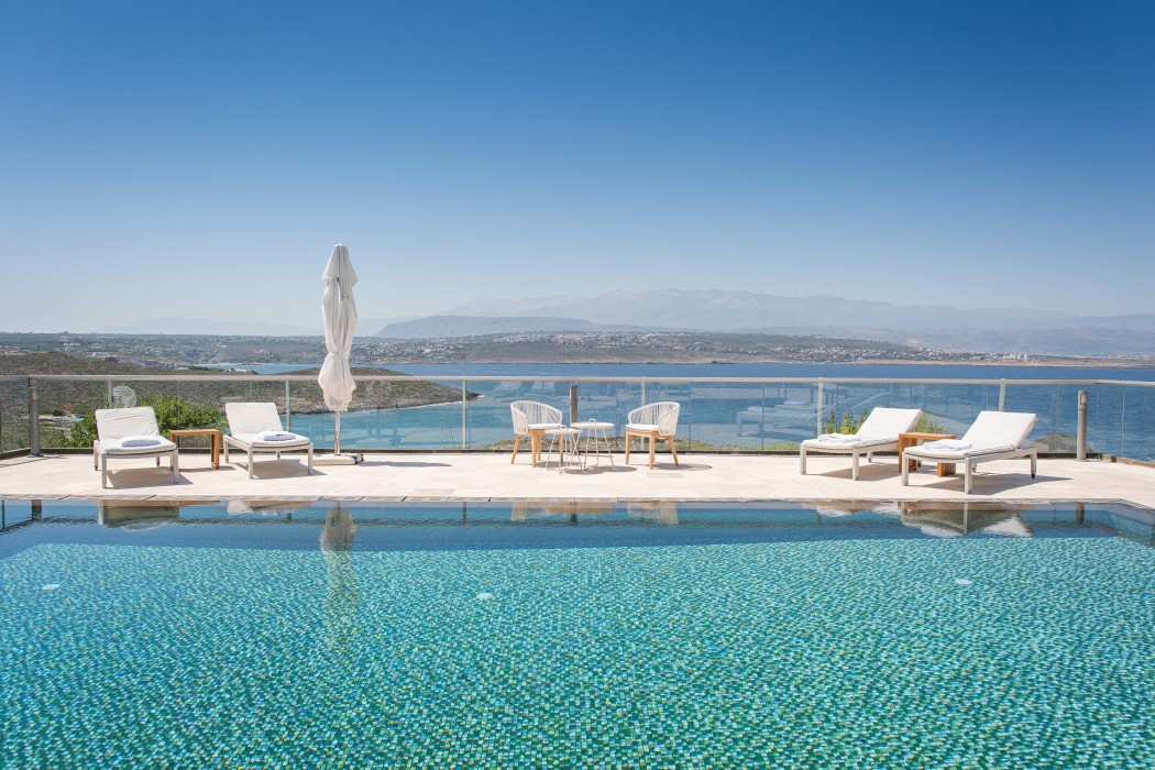 Built on the highest point of the property, from this Villa you can see the entire Arkotiri Peninsula and the town of Chania. The crystal sea and mountain views are spectacular.