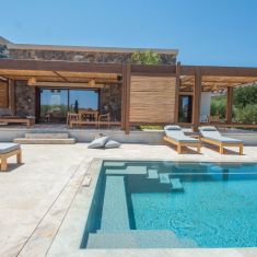 It is a three bedroom & two bathroom villa, accommodating up to 6 guests and offers a perfect balance of minimalist design and high-end amenities. Surrounded by beautifully landscaped gardens, the villa feature a private swimming pool, spacious sun terrace, BBQ area, and secure private parking. Whether you're relaxing under the pergola by your private pool, tasting wine from your private cellar, or exploring nearby historic sites like the islet of Spinalonga, the Villa offers an unforgettable escape to the true essence of Crete. Every detail, from the architectural elegance to the curated amenities, reflects our dedication to offering a memorable vacation, that's both inspiring and indulgent, making the villa family friendly or ideal for a group of friends.